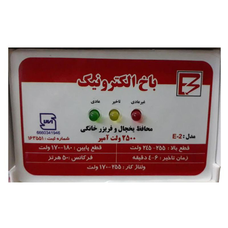 این محصول، محافظ یخچال و فریزر خانگی فلزی 2400 ولت باخ الکترونیک BAKH ELECTRONIC مدل E-2 همراه با سیم به مقدار 1 متر می باشد. این محافظ ساخت ایران بوده و دارای 2 سال گارانتی است.