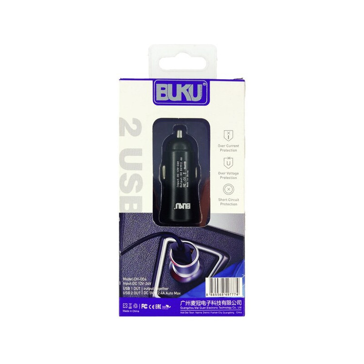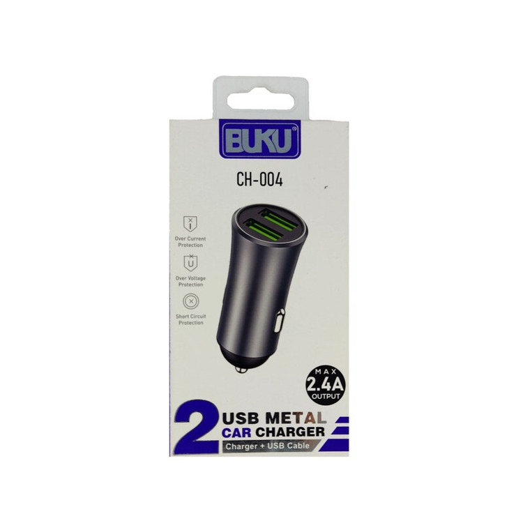 شارژر فندکی 2USB Metal برند Buku مدل CH-004