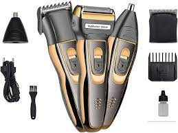 یک عدد خط زن برای مو سر و صورت و بدن به همراه یک عدد شانه قابل تنظیم یک عدد سری شیور برای اصلاح مانند تیغ یک عدد سری الاح مو داخل گوش و بینی