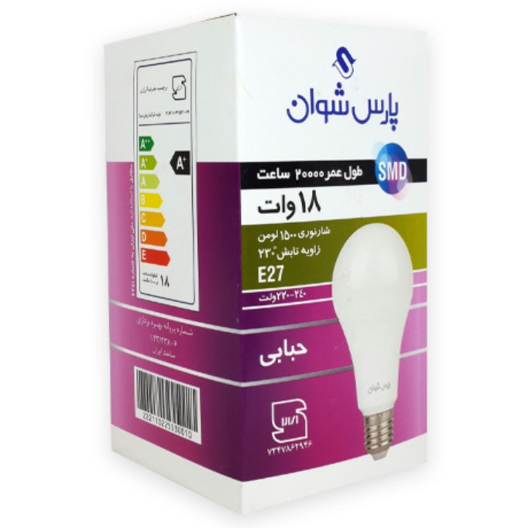 لامپ ال ای دی ۲۰ وات حبابی مدل E27 پارس شوان