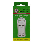 این محصول، شارژر دوتایی قلم و نیم قلم سی اف ال DIGITAL C.F.L مدل DET-105P می باشد. شما می توانید با استفاده از این شارژر، کلیه باتری های قلم و نیم (AA/AAA و Ni-MH/Ni-Cd) با قابلیت شارژ را مجددا شارژ نمایید. این شارژر به طور مثال برای شارژ هر باتری قلم 600 میلی آمپر mAh، به 6 ساعت زمان نیاز دارد. همین روند برای تکمیل شارژ باتری های نیم قلم 600 میلی آمپر mAh هم وجود دارد. شما می توانید برای اطلاع بیشتر از زمانبندی تکمیل شارژ باتری های مختلف، به جدول درج شده بر روی کارتن محصول مراجعه کنید. شارژ دوتایی سی اف ال C.F.L، دارای دو چراغ کوچک قرمز رنگ برای نشان دادن وضعیت شارژ باتری می باشد و همچنین دو شاخه ای که در پشت آن قرار گرفته، به حالت تاشو (باز و بسته شدن) طراحی شده و امکان راحتی را برای استفاده مشتریان فراهم نموده است. این محصول به سفارش شرکت دوربین انرژی تهران (نماینده انحصاری محصولات شرکت Digital C.F.L در ایران و کشورهای همجوار) بوده و هم اکنون با بارکد اصالت کالا و در رنگبندی سفید، با ابعاد 10*5*3 موجود و قابل سفارش می باشد.