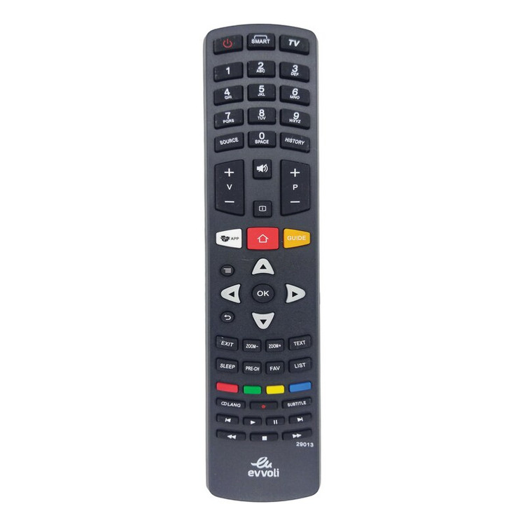 این محصول، کنترل تلویزیون ال ای دی LED ایوولی Evvoli می باشد. این کنترل، به وسیله دو عدد باتری نیم قلم مورد تغذیه قرار گرفته و هم اکنون در ابعاد 26*5*2.5 سانتی متر و در رنگبندی مشکی موجود و قابل سفارش است.